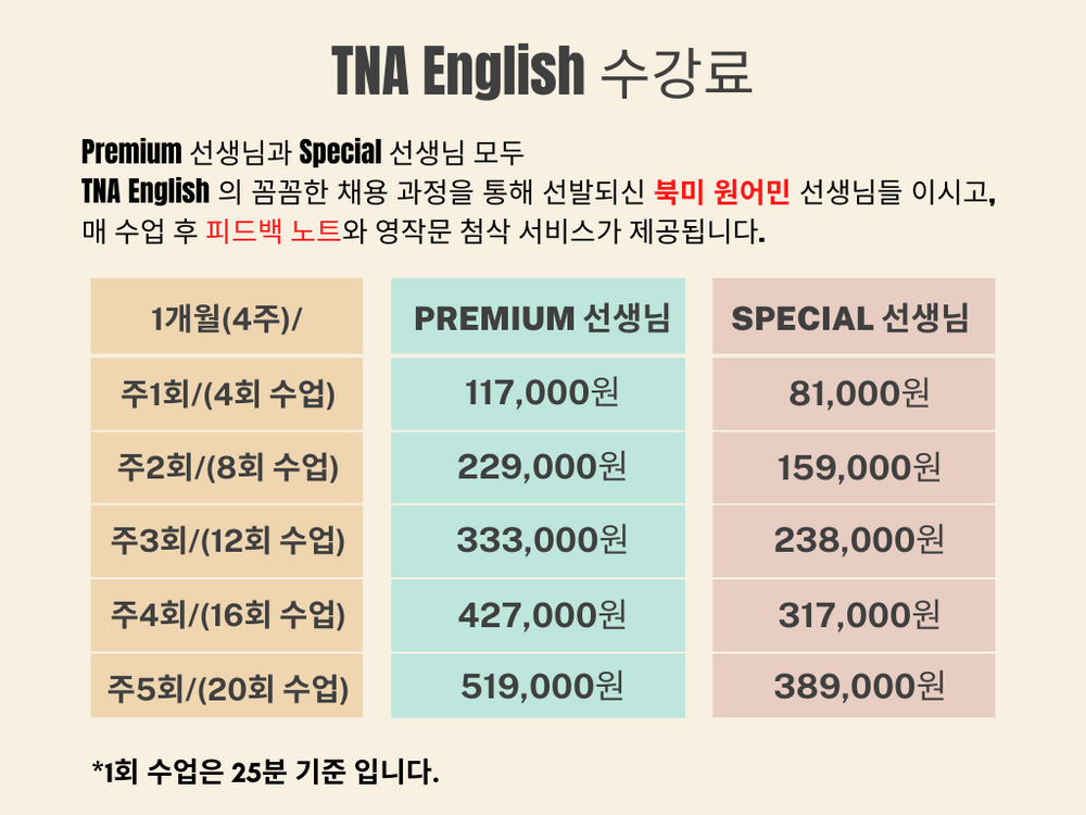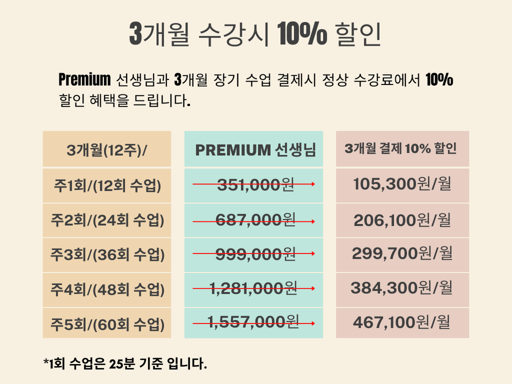 *주2회 이상 수강시 영작문 첨삭 서비스 무료제공 (공지사항 게시판 참조)